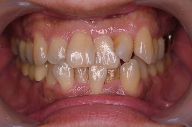 他院で治療した前歯が自然に見えないことがずっとコンプレックスとのことで、当院で作り替えました。この症例について、詳しくはこちらをご覧ください。